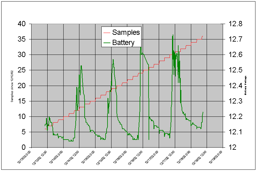 Battery Voltage Response to Sample Collection |