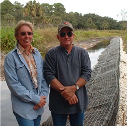 Southern DataStream was contracted by Madrid Engineering to monitor performance of a phosphorus control demonstration project at Chandler Hammock Slough. The project is funded by a grant from South Florida Water Management District (SFWMD) to Daniel and Marcia Candler. The objective is to remove phosphorus from runoff by directing water through baskets filled with an iron humate material. Southern DataStream designed and installed a flow-integrating composite sampling system that monitors flow rate and collects water to be analyzed for phosphorus and iron content. The system is equipped with a telemetry system that transfers data to the SDS office in Labelle every 20 minutes. |